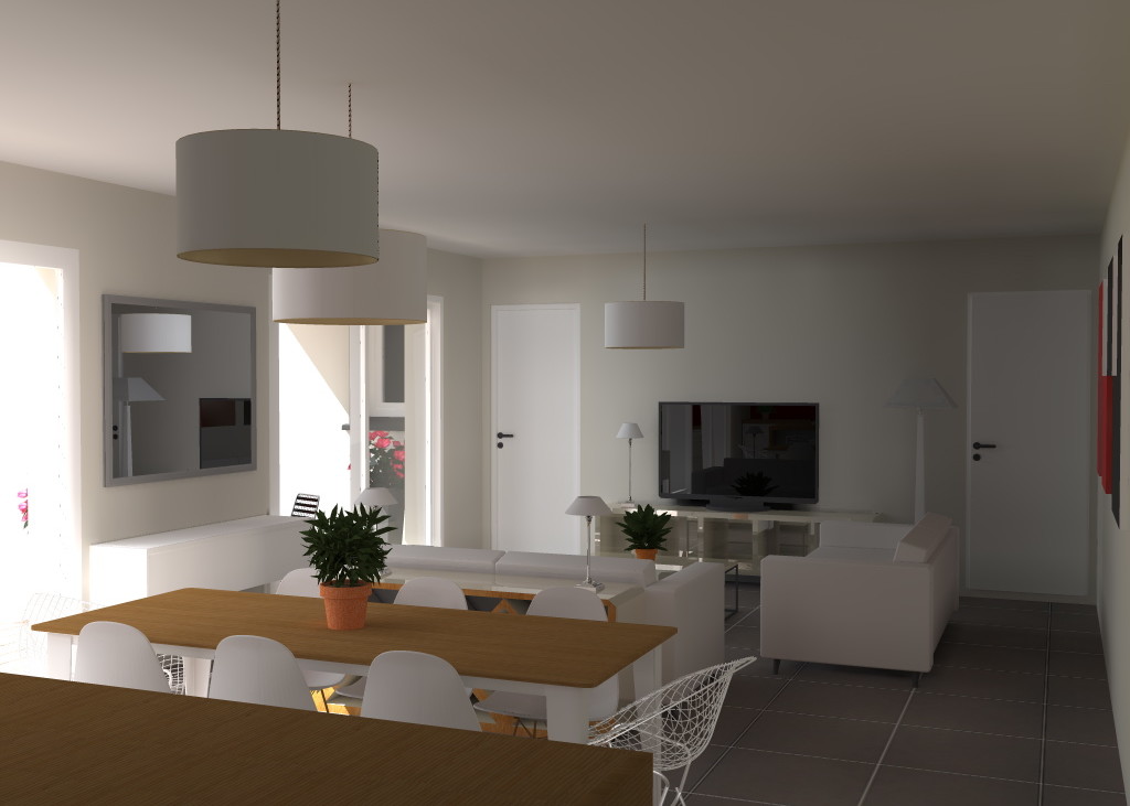 – 1 grande pièce de vie entièrement ouverte donnant au sud et sur une terrasse,